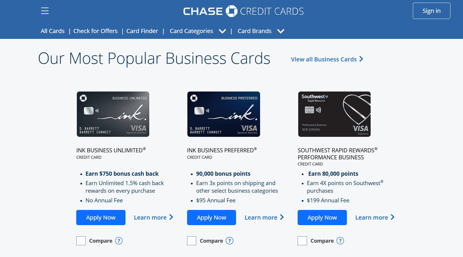 Chase Ink Business también ofrece tarjetas de crédito de negocios para LLCs. Ofrece tasas introductorias de 0% de interés, 1.5% de recompensas ilimitadas de reembolso de dinero por cualquier compra y puntos de bonificación cuando tus compras son de un monto alto (por ejemplo, más de $15,000 USD).